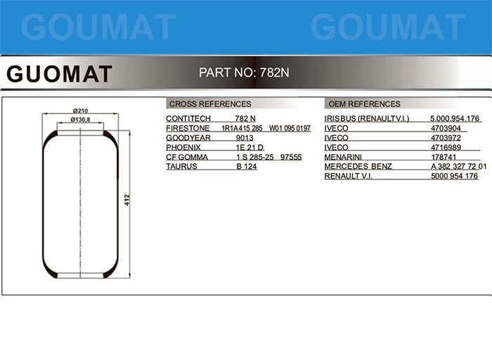 782N/安凱客車氣囊/安凱客車空氣彈簧/CONTITECH 782N/FIRESTONE STYLE 1R1A-415-285/PHOENIX 1E21D/GOODYEAR 9013/CF GOMM