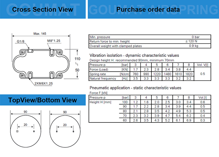 目前自產(chǎn)應(yīng)用于工業(yè)設(shè)備上最小規(guī)格直徑的空氣彈簧自然外徑125MM;大一型號(hào)的1B7070;