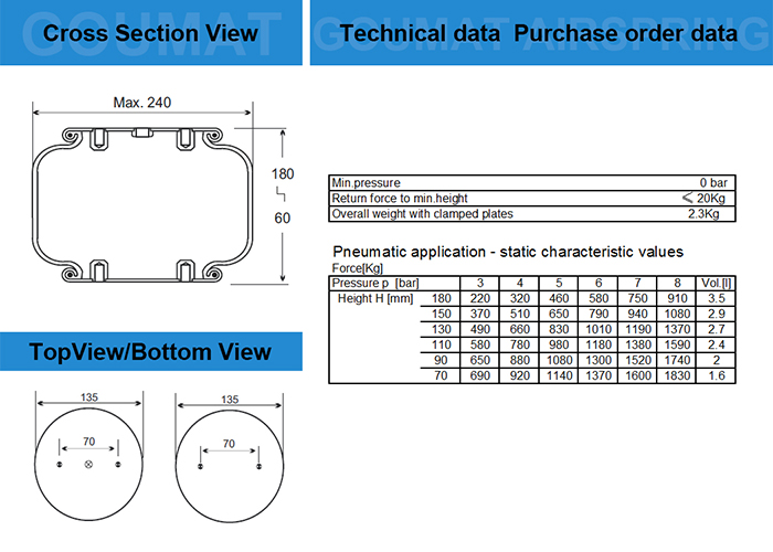 目前自產(chǎn)應用于工業(yè)設備上規(guī)格直徑的空氣彈簧自然外徑200MM同等尺寸行程比較大的型號;同等尺寸不同行程的1B8X4;大一型號的1B6910;小一型號是1B1209