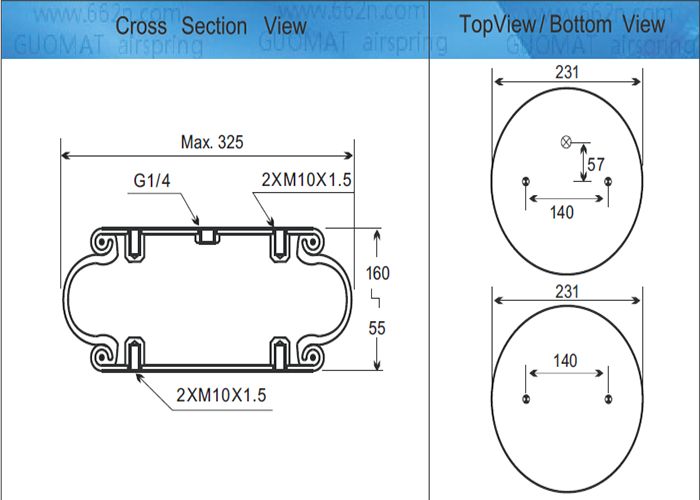 1B5330P03/單曲工業(yè)空氣彈簧/Firestone: W01-358-7009/Contitech: FS330-11 468/Goodyear: 1B12-301/Triangle : 637