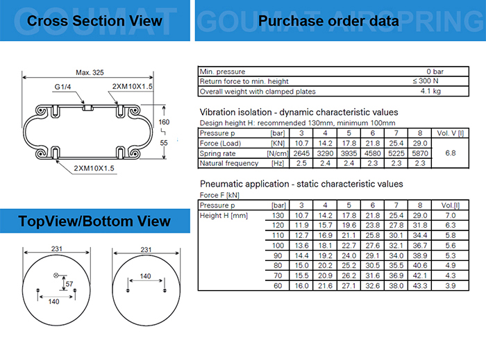 目前自產(chǎn)應(yīng)用于工業(yè)設(shè)備上規(guī)格直徑的空氣彈簧自然外徑300MM同等類(lèi)型尺寸較大的型號(hào);大一型號(hào)的1B53014;小一型號(hào)是1B6910;同一型號(hào)不同連接方式1B5330