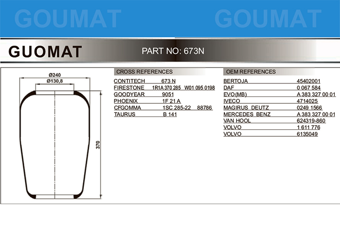 673N/北方奔馳客車氣囊/北奔空氣彈簧/CONTITECH 673N/FIRESTONE STYLE 1R1A-370-285/W01-095-0198/PHOENIX 1F21A/CF GOMMA