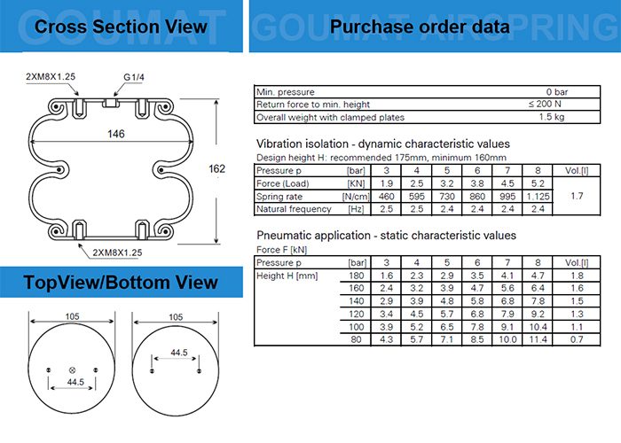 目前自產(chǎn)應(yīng)用于工業(yè)設(shè)備上,空氣彈簧自然外徑150MM同等類(lèi)型尺寸小的型號(hào);;大一型號(hào)是2B7070;小一型號(hào)2B4060