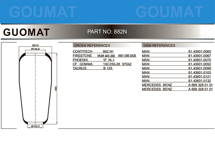 - 882N/宇通客車氣囊/小曼底盤空氣彈簧/ CONTITECH 882N1/FIRESTONE STYLE 1R4R-465-260/PHOENIX 1F16-1/TAURUS B155/GOODYE